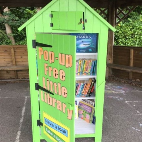 A wonderful pop-up library appeared on the playground on Monday.