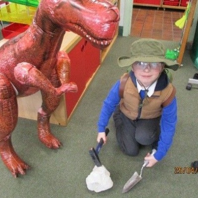 A gigantic dinosaur appeared in the Year 1 classroom but the children weren’t scared! They became dinosaur experts and palaeontologists for the day, The children searched for fossils buried in the sand and then used magnifying glasses to observe them closely. They even made their own fossils using salt dough. They found out about different dinosaurs using non-fiction books and created stories about how the dinosaurs became extinct. Out in the forest they discovered a huge egg and are now anxiously waiting for it to hatch!